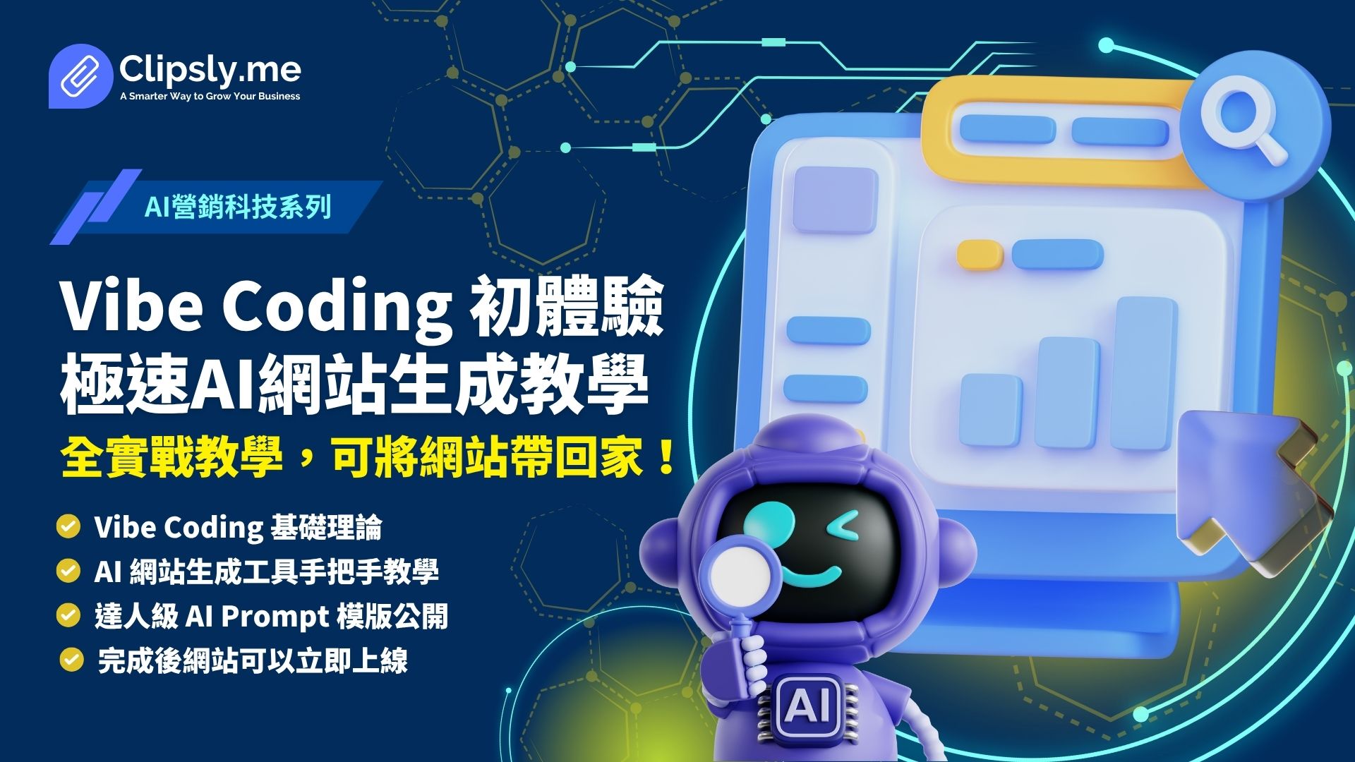 掌握全球最新Vibe Coding建站技術,90分鐘內親手完成專業網站
